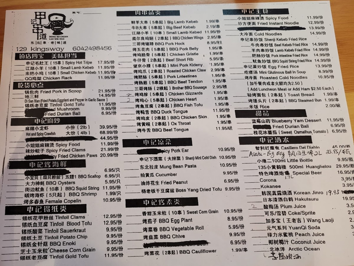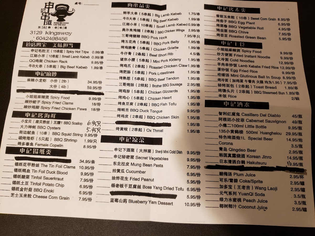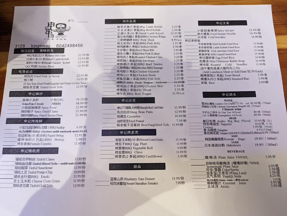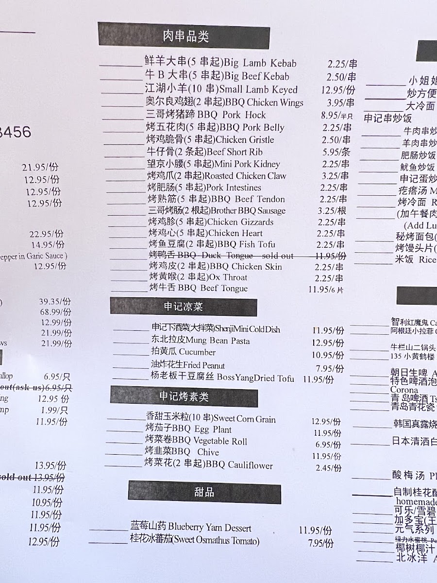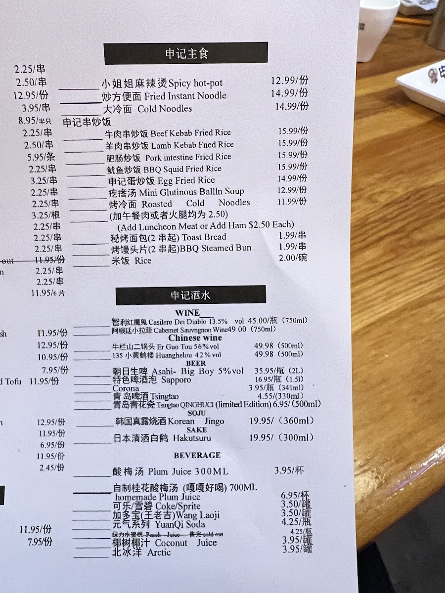 One of my favorite skewers Chinese spot! Love the food and menu, good for beer!!! The steamed oyster is bigger than my hand, the scallops are so good....